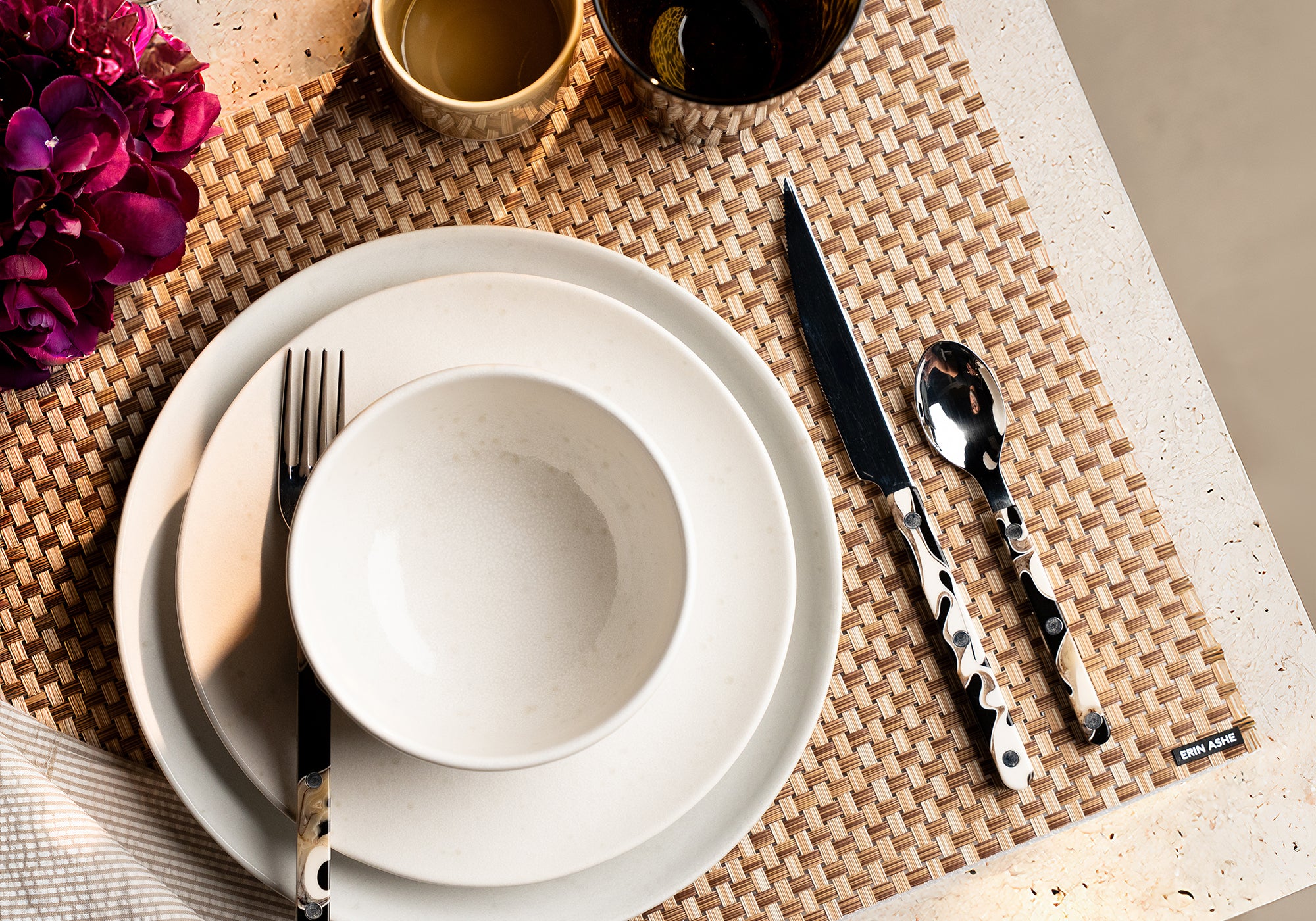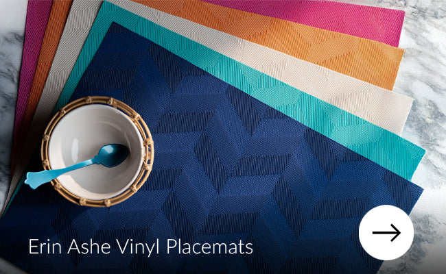 Introducing Erin Ashe Woven Vinyl Placemats—where refined style meets everyday durability. Designed for both indoor elegance and outdoor entertaining, these placemats bring a polished, designer touch to any table while standing up to daily use.
