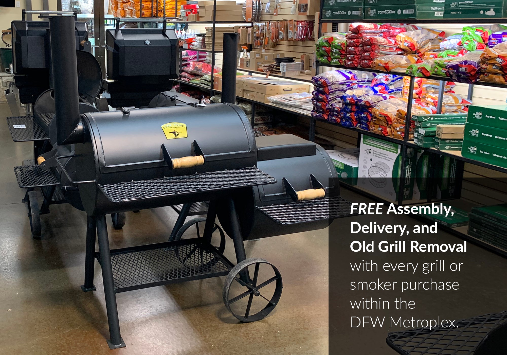 Exclusive Offer: Enjoy complimentary assembly, delivery, and old grill removal with every grill or smoker purchase within the Dallas–Fort Worth Metroplex.